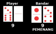 – Bandar akan selalu menang jika mendapat jumlah kartu yang sama dengan player.