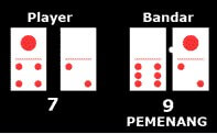 Bila salah satu pemain mendapatkan angka 9 maka pembayaran di kali 2
