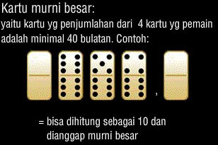 - Kartu murni besar yaitu 4 kartu yang di miliki pemain jumlah keseluruhan bulatannya berjumlah minimal 40 bulatan
